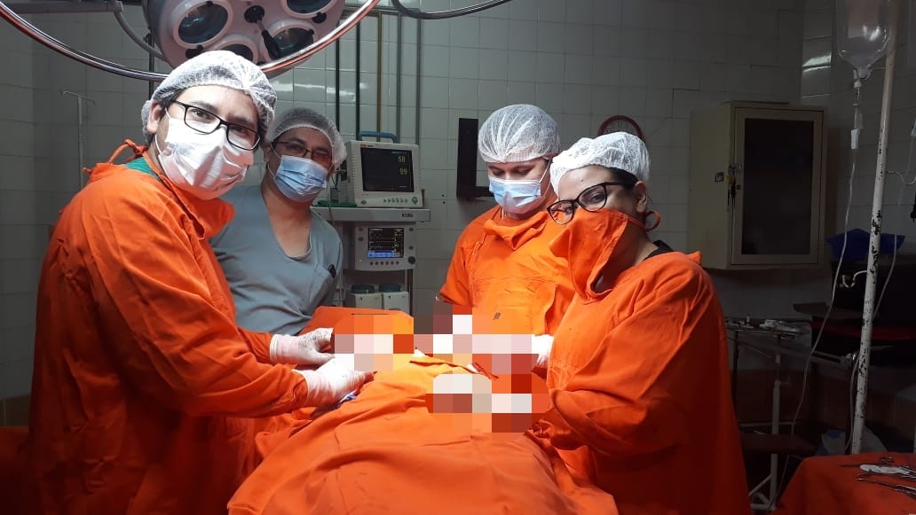 El equipo quirúrgico que estuvo a cargo del procedimiento está integrado por: una mastóloga, Dra. Cecilia Gómez; un cirujano oncólogo Dr. Rodrigo Apestegui, un residente de Cirugía General, Dr. Javier Batte y el Anestesiólogo, Dr. Prieto.