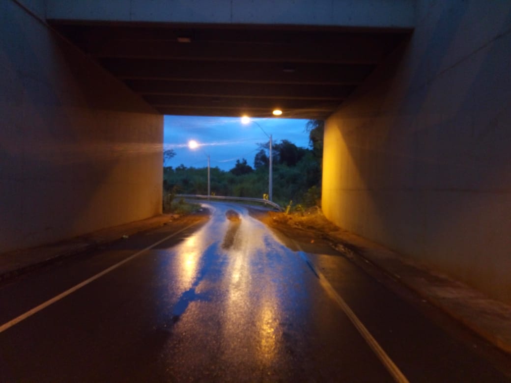 Un montículo de tierra, a raíz de las intensas lluvias, obstruye el paso regular de los vehículos en el túnel bajo la Supercarretera Itaipu Binacional. Esta...